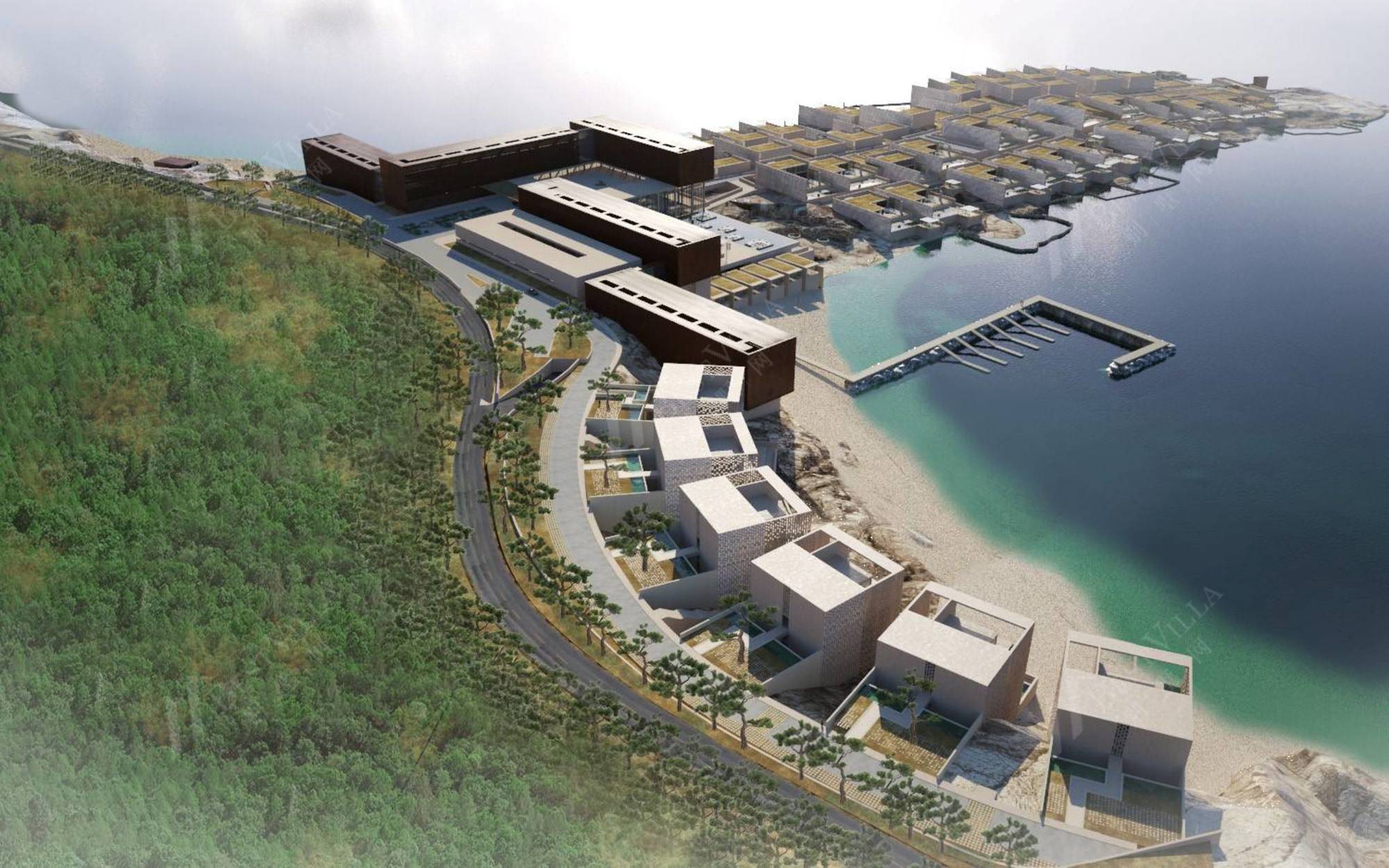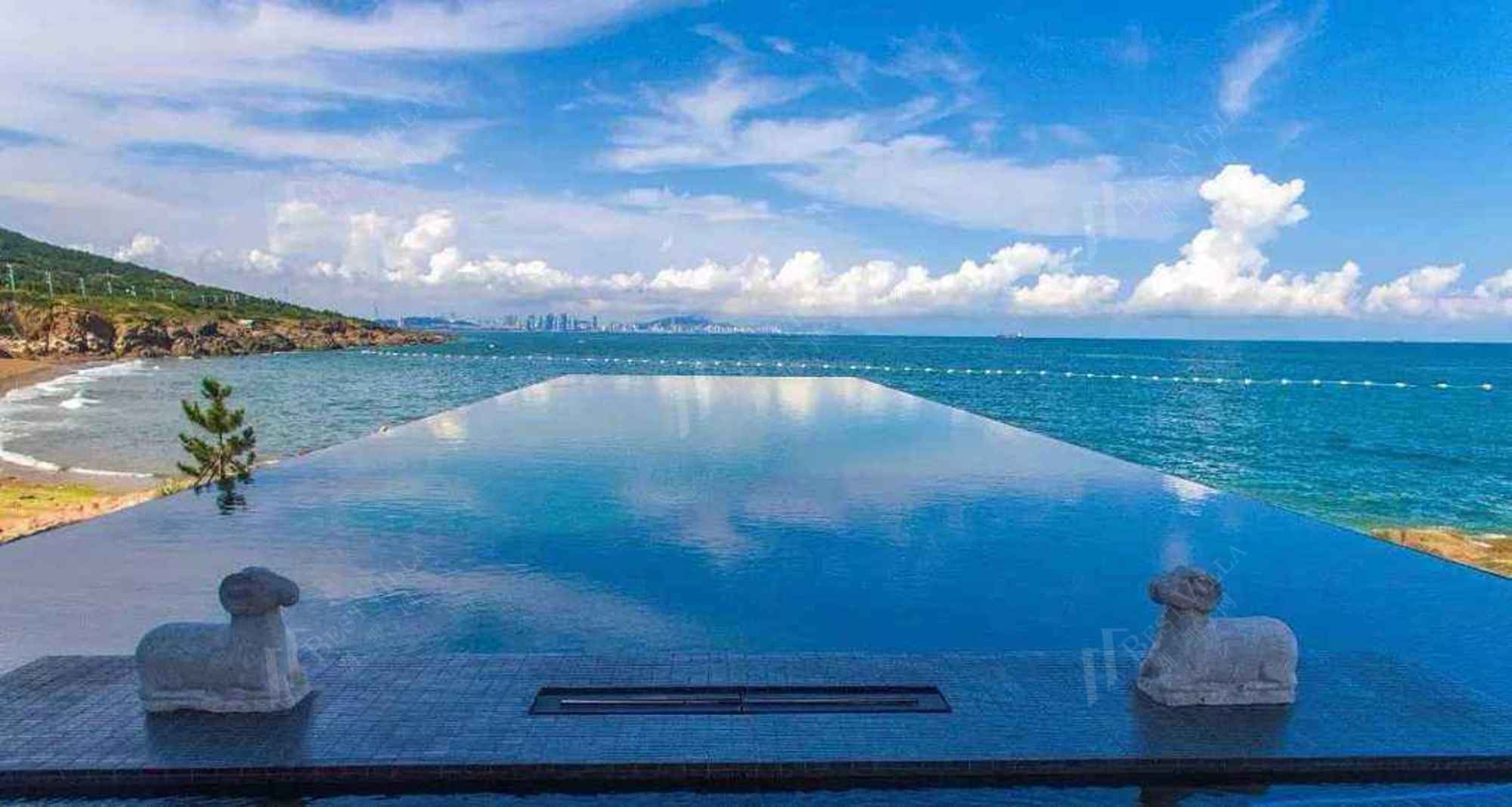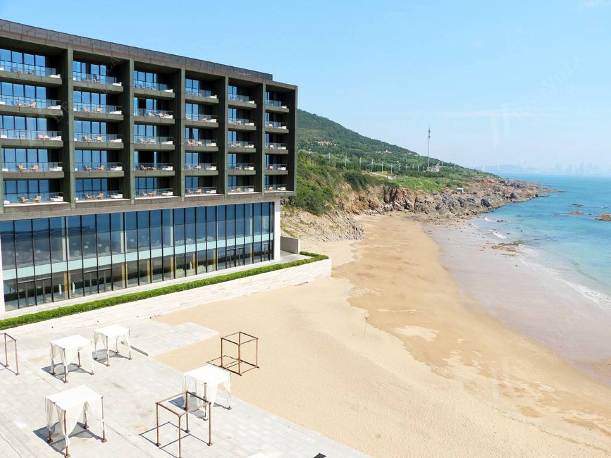 青岛涵碧楼秉承台湾涵碧楼品质,是中国大陆首个文化创意度假酒店。基地总面积为212亩(约14.15万平米),该项目总投资近5亿美元,规划330间房,总建筑面积14.5万平米,内含160间消费客房、海景独栋别墅41栋、海景复层别墅30栋、可容纳80桌以上的大型国际会议厅、多国美食餐厅、户外游泳池、海上婚纱教堂与宴客厅、SPA会馆等。不同于其它观光饭店或连锁度假酒店的金碧辉煌或奢华建筑,青岛涵碧楼是乡林集团再度携手日月潭涵碧楼设计大师Kerry Hill,在中国打造的首家酒店,依山傍海,每间房间有100平米的大空间,延续日月潭涵碧楼建筑的极简风外,还保有并融合当地自然景观,像是黄岛区金沙滩的沙滩,岩盘全数保留,鲍鱼池,变成饭店的特色规划之一。